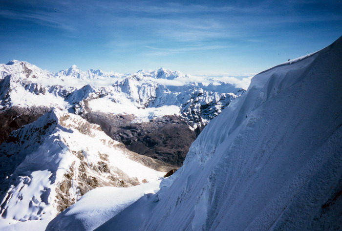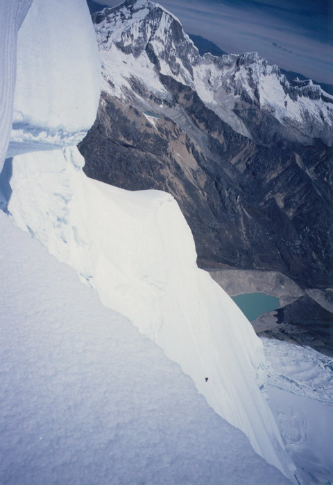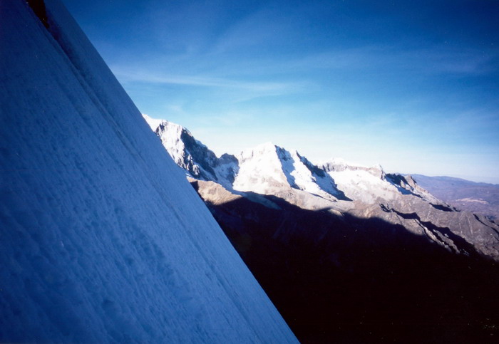 ![]() ペルーアンデス トクヤラフ峰6100m ![]() トクヤラフ HC ![]() トクヤラフ西壁 長大な滑り台 ![]() トクヤラフ西壁 頂上マッシュルーム下 ![]() 西壁氷壁登攀 セラックバリアーの弱点 前爪立ちのWアックス このあたりからアイスピックの止めネジが外れそうに。。。 ![]() 西壁 氷壁登攀 写真下部中央の黒い点 Sちゃん ![]() トクヤラフ頂上 6100m 先に頂きで一服のS先輩 初めての高所登攀、とても苦しく恐ろしく、なのに嬉しく気持ちいい。この快感が病み付きに。自分をハメた先輩に感謝した。 ![]() トクヤラフ西壁 ![]() ワスカラン6900m 宝石のようとはよく言ったもので、美しいものには触りたくなる。触ると登りたい。登ると頂きに立ちたくなる。 ![]() ワスカラン S先輩を肩に担いでクレバスに覆いかぶさる氷壁を越えた、Wアックスで心地よい急登のあとホワイトアウト ![]() ワスカラン クレバス多くルートファインデングにはワクワクした ![]() ワスカラン 奥のV字壁を這い上がる ![]() ワスカラン ノーマルルートの核心部は底なしクレバスの奥にたちはだかる10mの垂壁だった それを越えてビレーするS先輩。