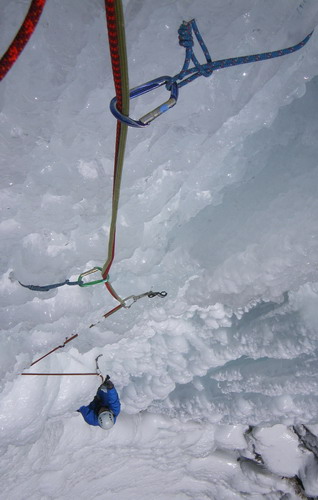 避と思われたがちょうど45mにて大ツララを叩き落として快適なツララ洞窟を作成。