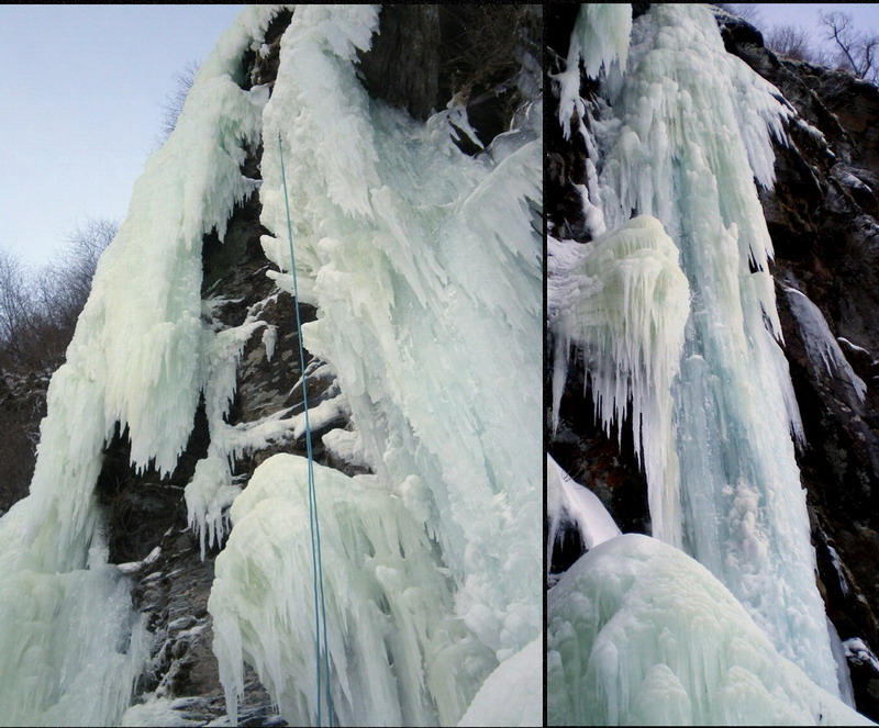 1P目の核心は左端の幅70-80センチ 7-8mの氷柱。